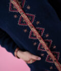 Dark blue woolen jacket with Ethnic embroidery, made -to-order